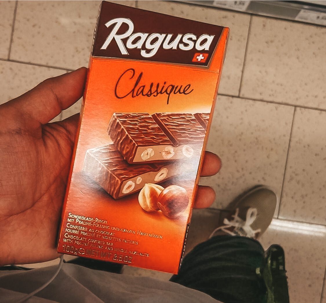 Но начиналось все неожиданно. На исходе 1942 года, в Швейцарии, запасы какао-порошка подходили к концу, страна считалась нейтральной, но фактически была окружена фашистской Германией. Торговые пути были нарушены, новых поставок не предвиделось. Гениальный шоколатье Камиль Блох, после долгих раздумий, нашел выход. Ему буквально пришлось приостановить выпуск своего популярного ассортимента, ради создания нового бренда. Кондитер решил использовать складские остатки, для создания нового продукта. Так как альпийские леса, изобилуют орешником, он использовал единственное сырье, имеющееся в избытке, изготовил из него восхитительный пралине, для усиления вкуса добавил цельный, обжаренный лесной орех, смягчил начинку нежной трюфельной массой. Это великолепие Камиль Блох покрыл тонким слоем своего лучшего шоколада. Так родился новый, невиданный до этого шоколад Ragusa Camille Bloch.