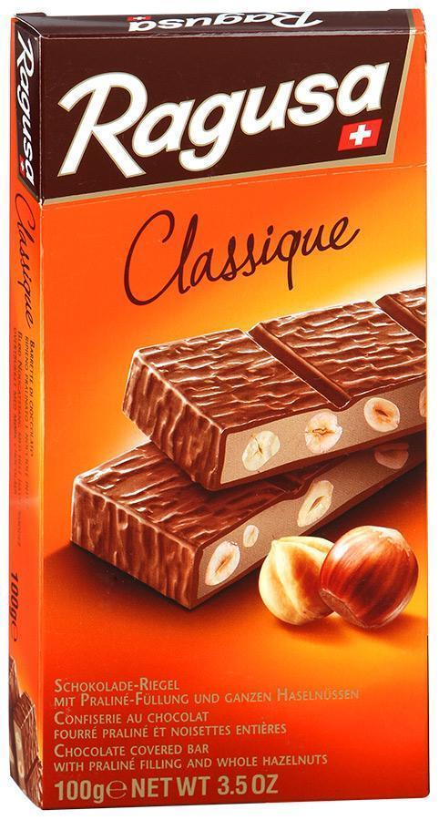 Ragusa Classique Camille Bloch – невероятно изысканный швейцарский продукт, с богатой, более семидесятипятилетней историей. Хотя, несмотря на значительный возраст, швейцарцы считают сладость модной, любимой тинейджерами, продвинутой молодежью, а главное спортсменами. Действительно, молочный шоколад Ragusa – оригинальный и креативный, его вкус безупречен, современен, идеально выверен и продуман. Удобные прямоугольные дольки, буквально сами просятся быть съеденными.
