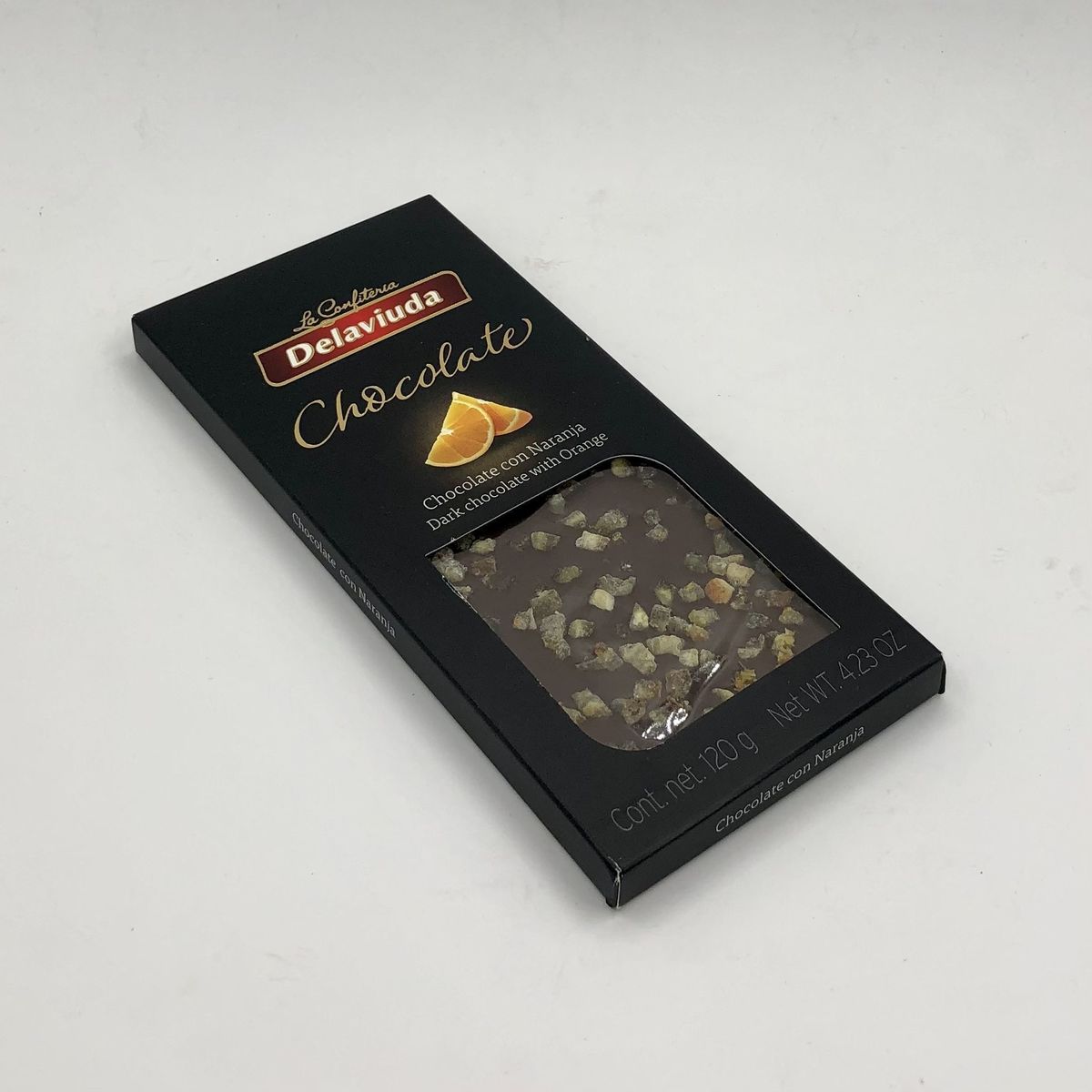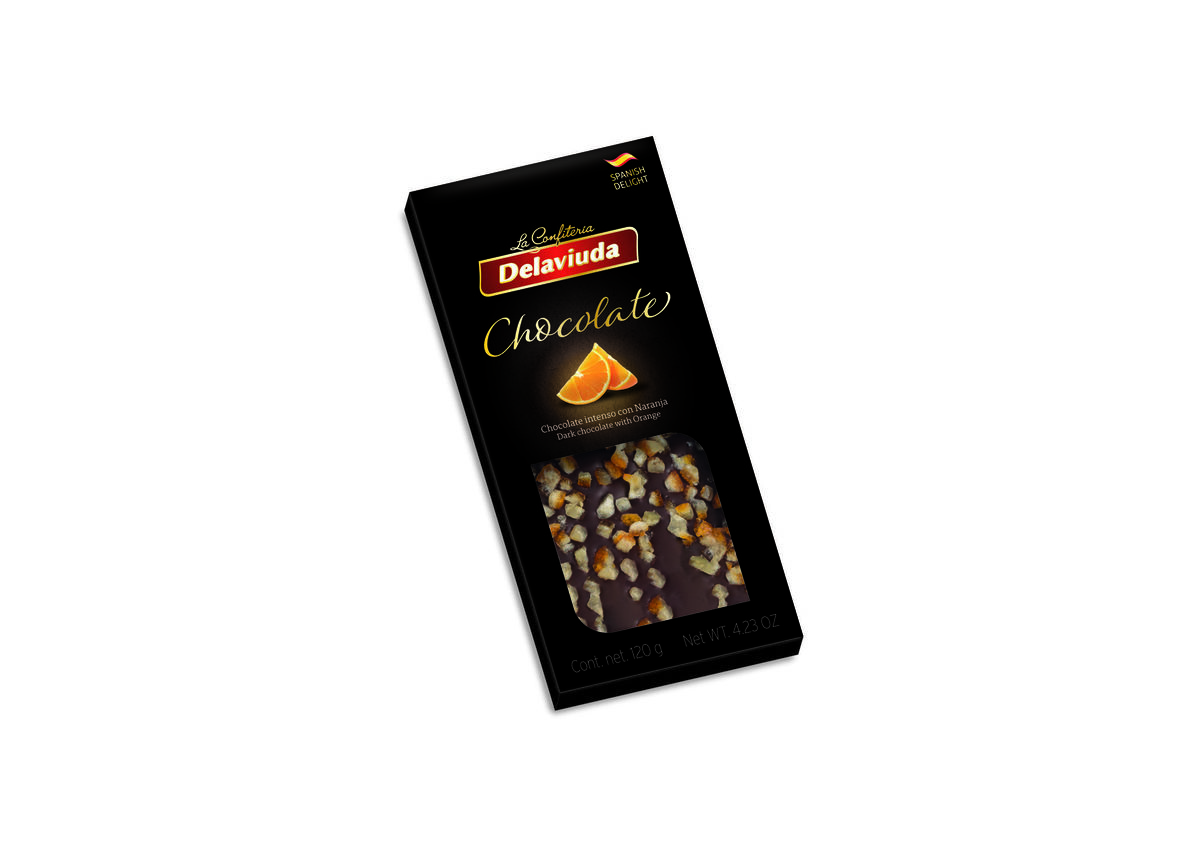 Вкусная плитка темного шоколада с засахаренной апельсиновой начинкой. Блестящее сочетание вкусов.