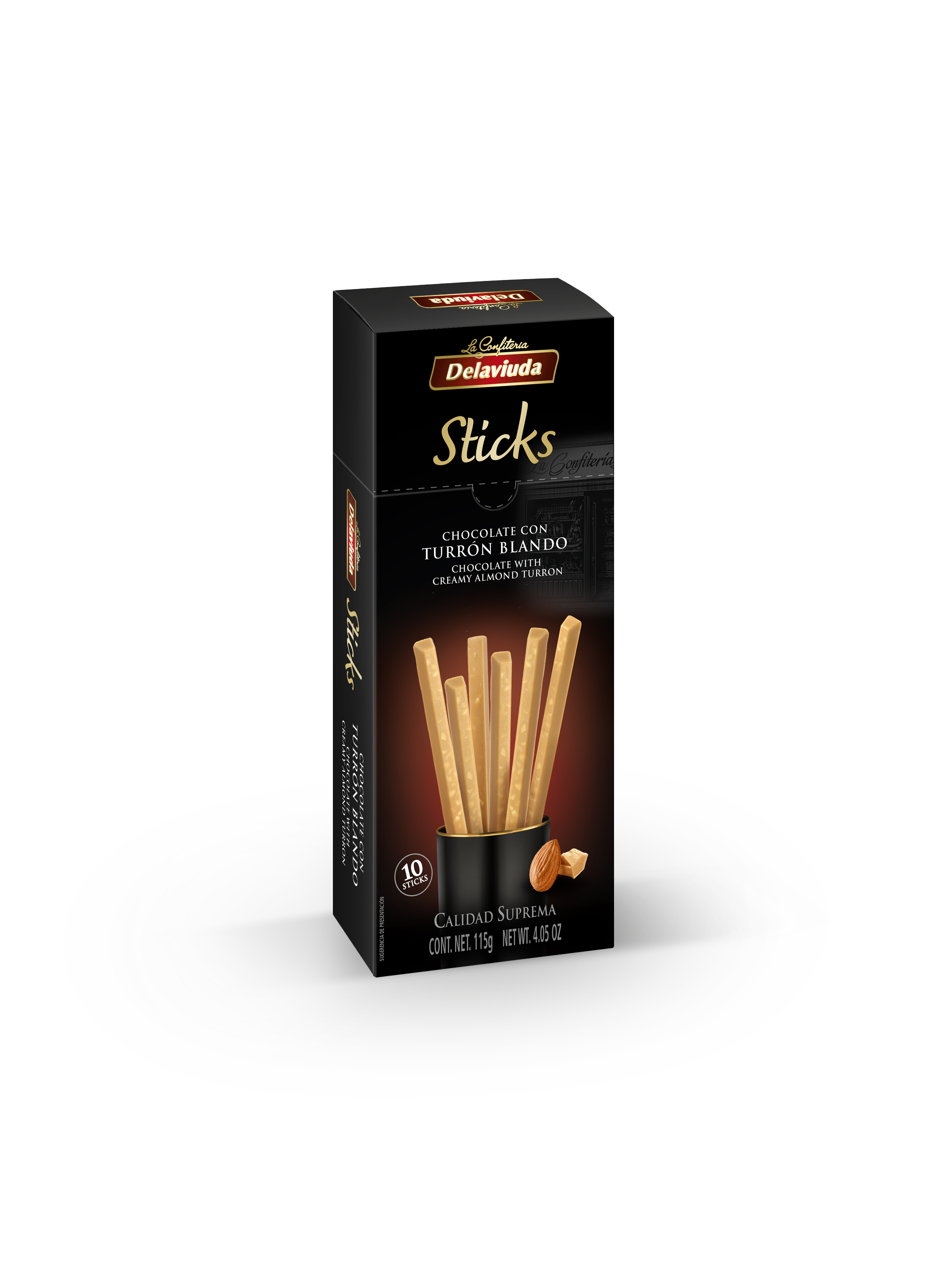 Delaviuda Sticks Chocolate con turron blando. Восхитительные шоколадные палочки с миндалем. Сочетание миндаля и шоколада настолько удачное, что просто невозможно остановиться! Хрусткость миндаля удачно дополняется нежной текстурой шоколада и буквально окунает вас в сливочно-миндальный букет вкуса.