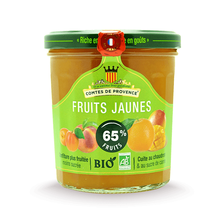 Этот джем - ассорти из ярких желтых фруктов, приготовленное в Провансе с добавлением 65% фруктов и тростникового сахара.