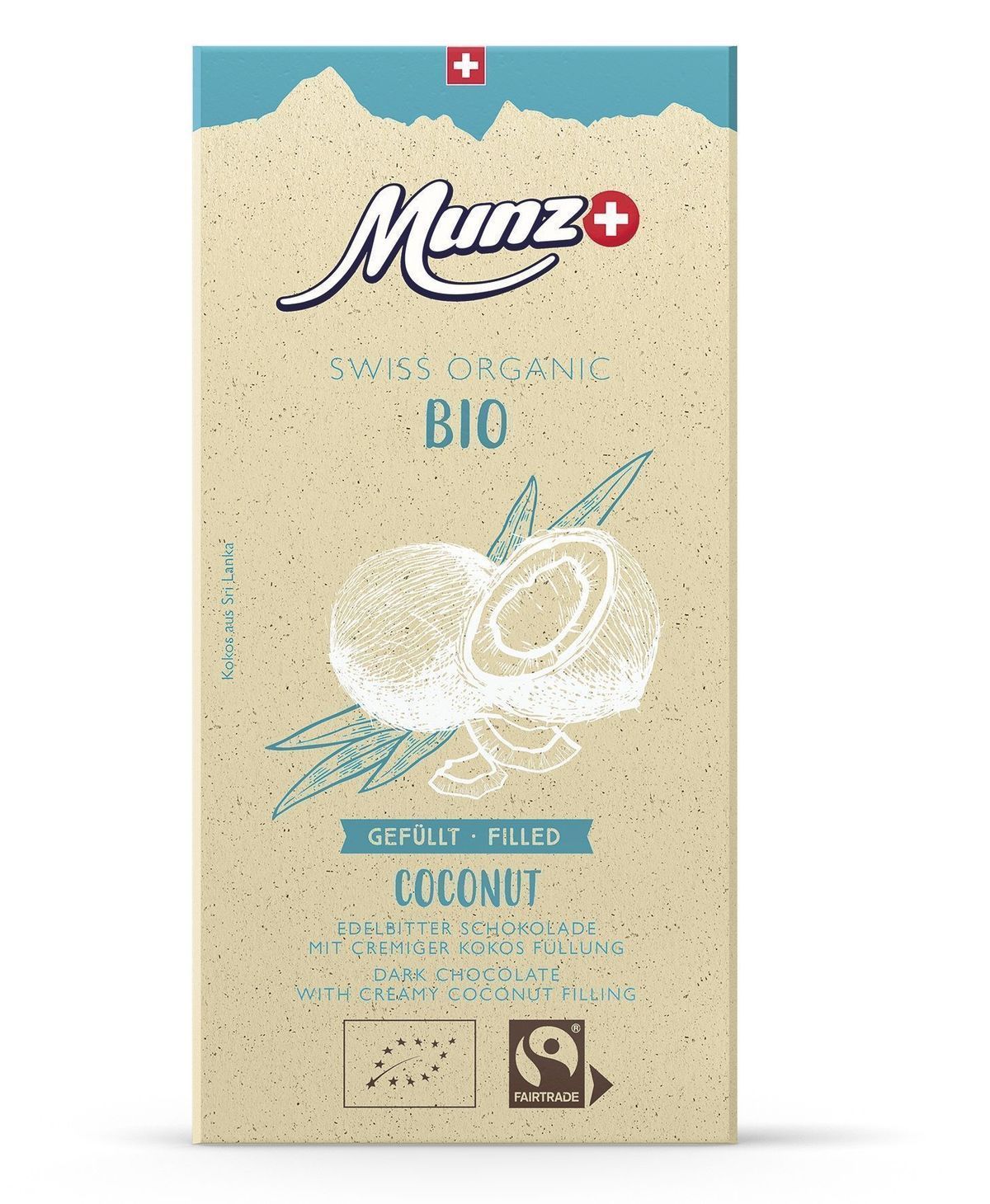 MUNZ Swiss Organic Coconut. Швейцарский темный шоколад со сливочно-кокосовой начинкой.